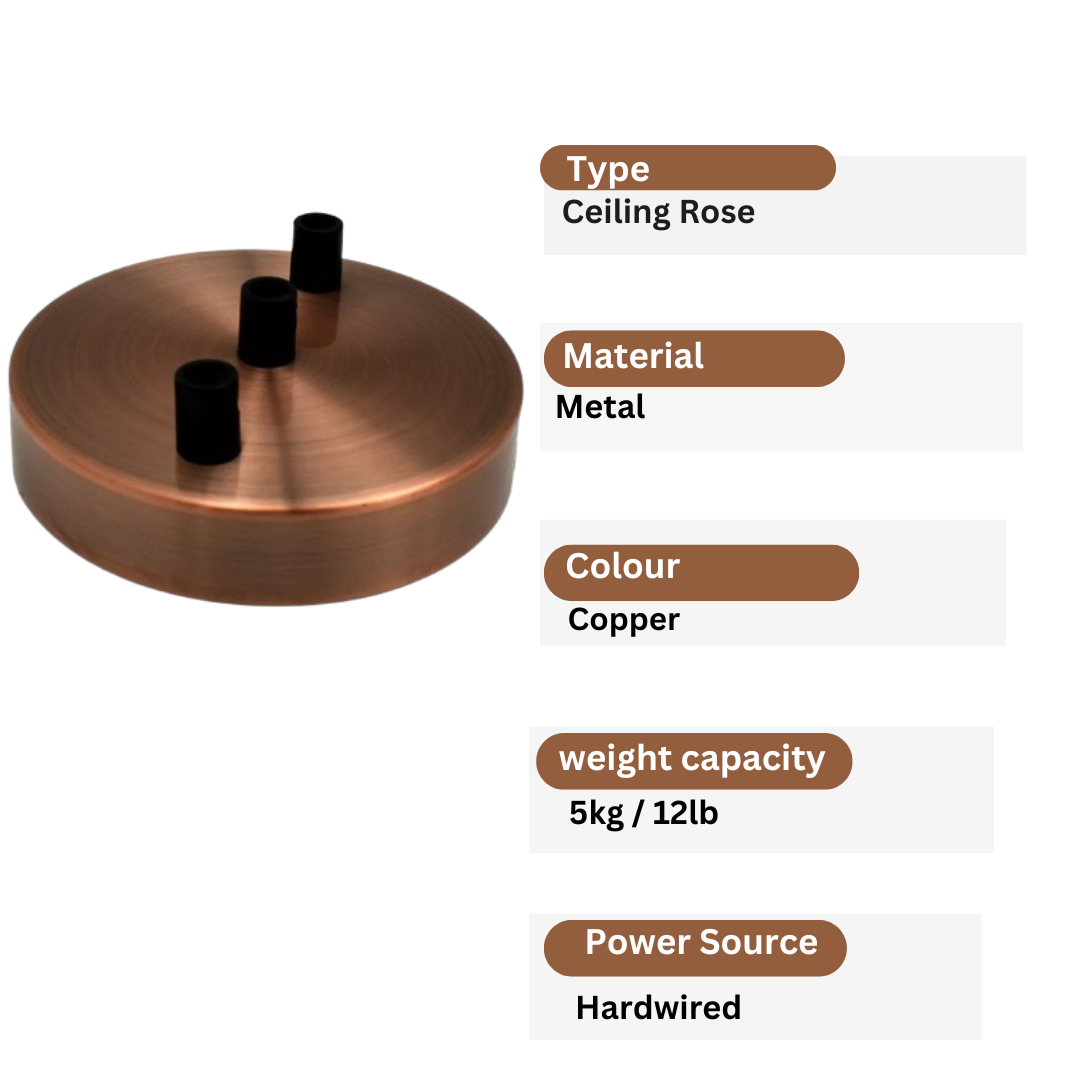 - Round metal Ceiling rose Comes with Cord grips, does not include fabric cable wire.