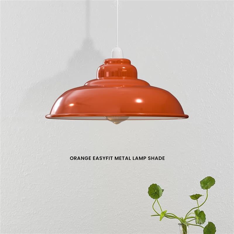 Eye-catching semi-curvy metal lampshade in a vibrant Orange gloss finish, adding warmth and character to modern and retro interiors. -