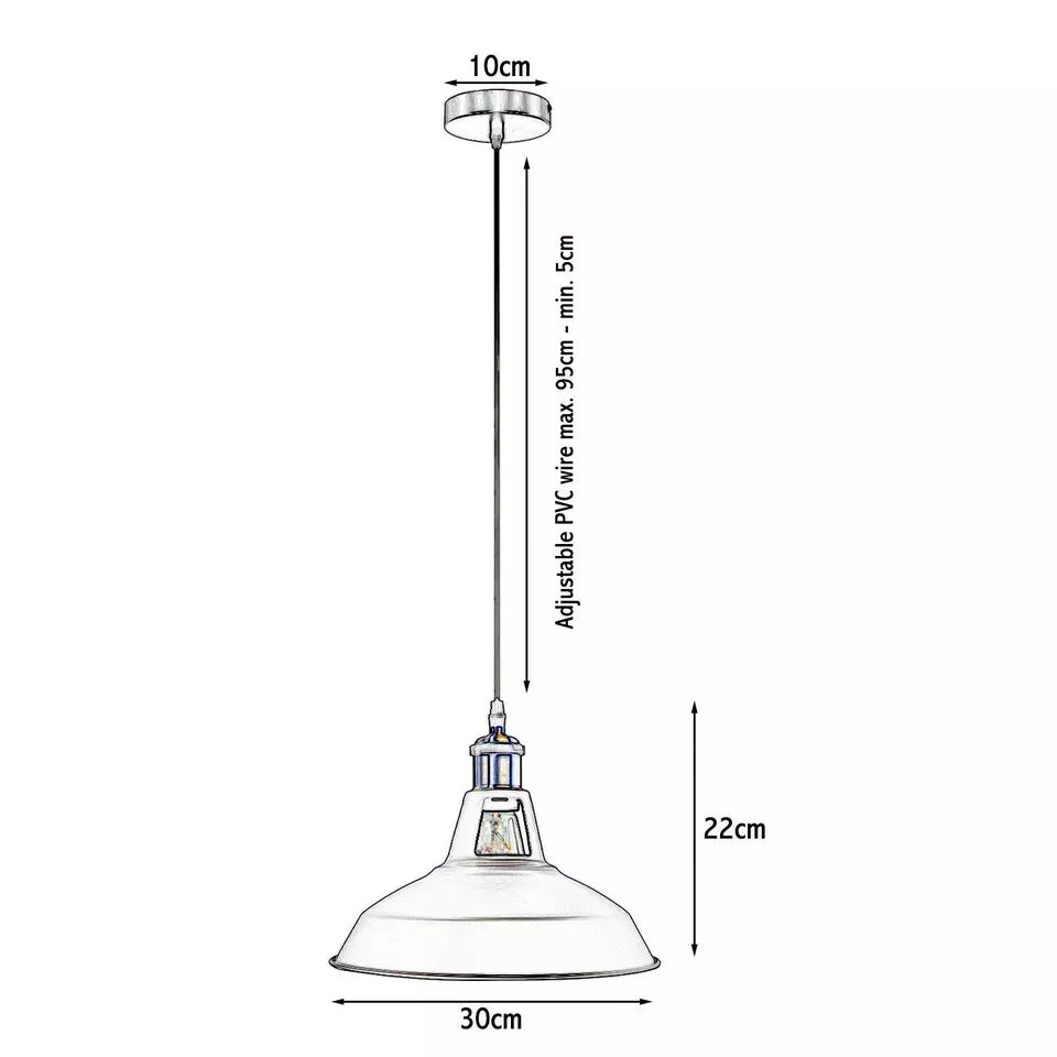 - Dimension: Ceiling rose 10 cm x 2.5 cm Shade 30 cm x 21 cm