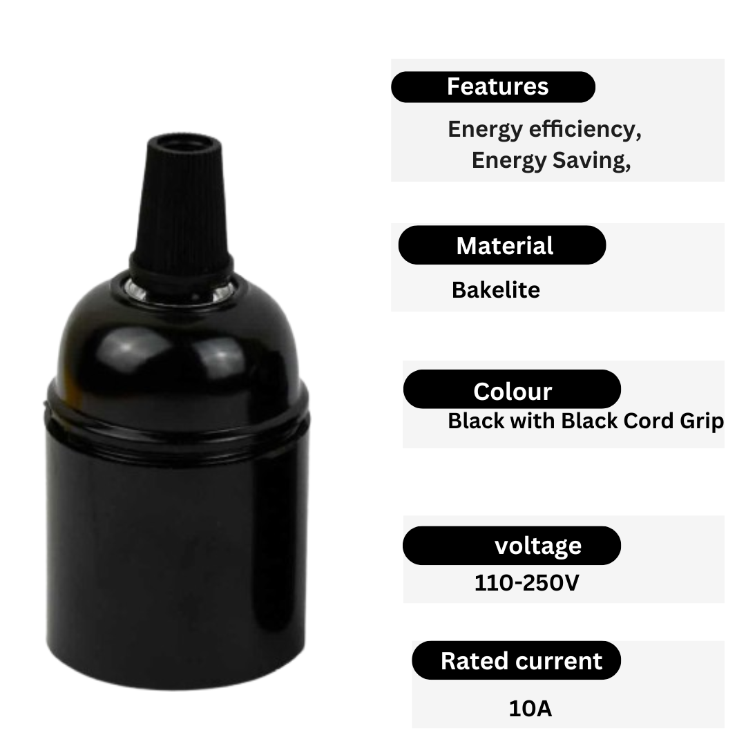 E27 Black Cord Grip Bakelite Lamp Holder~2986