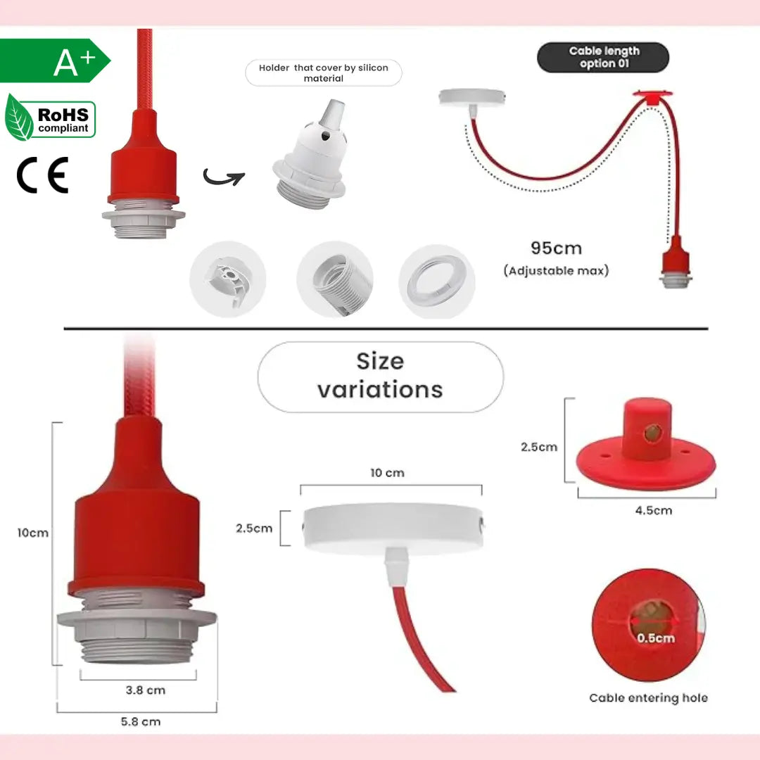 • The Pendant Light Fitting uses an adjustable cable 95cm (max), which you can hang higher or lower to suit your different hanging needs.