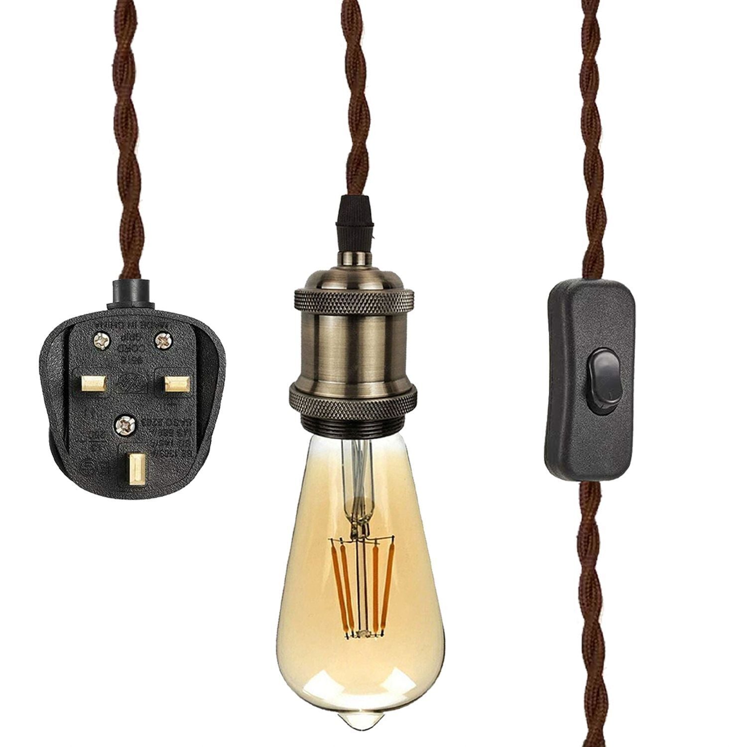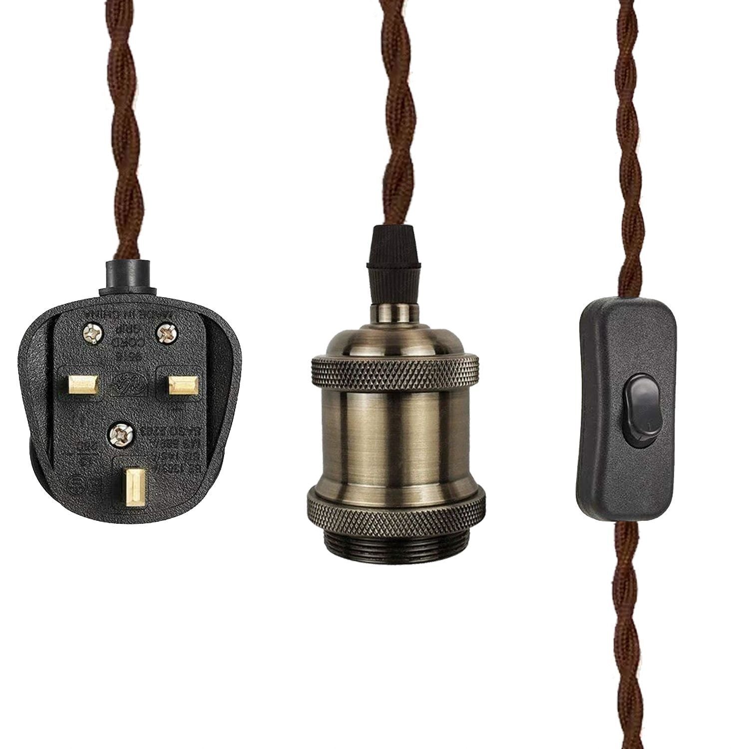 - Fabric Flex Cable Plug in Pendant Lamp Light Set E27 Fitting Vintage Bulb Holder.