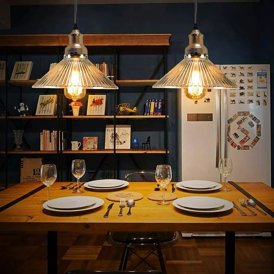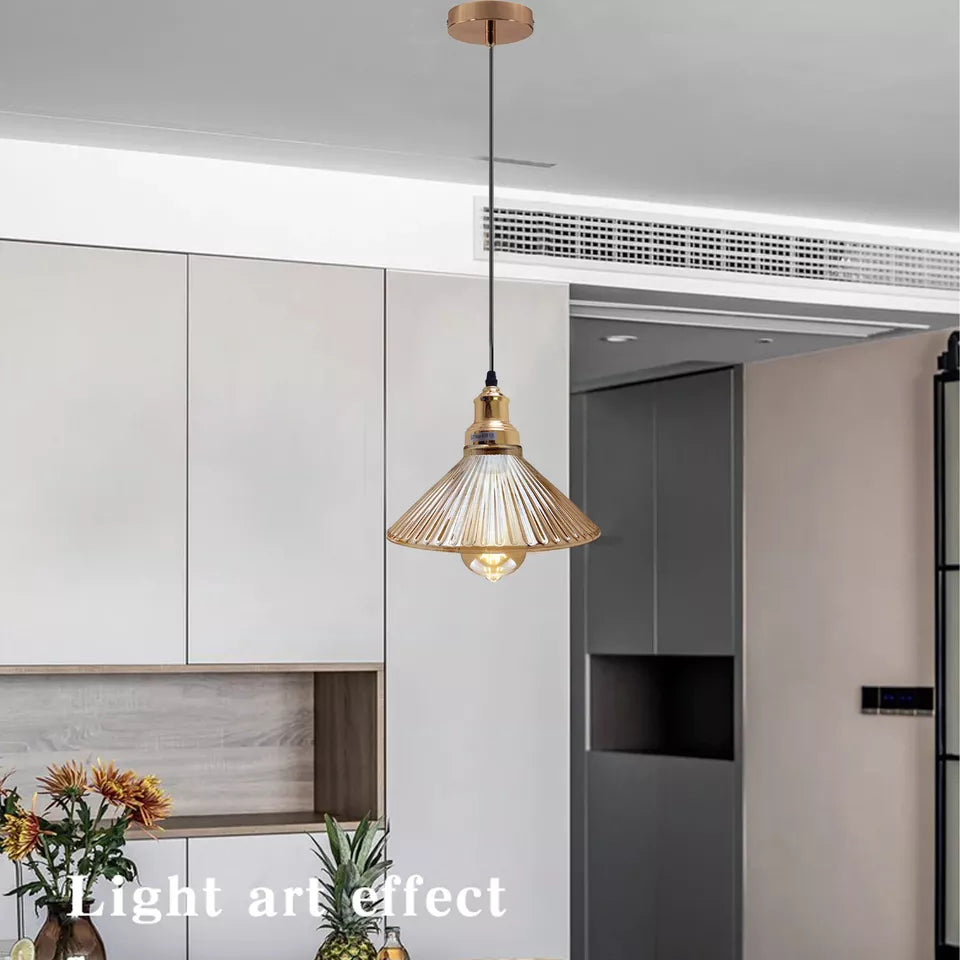 - Creative and fashionable vintage single-head pendant light fixture with amber glass shade and looks simple but attractive and space-saving.