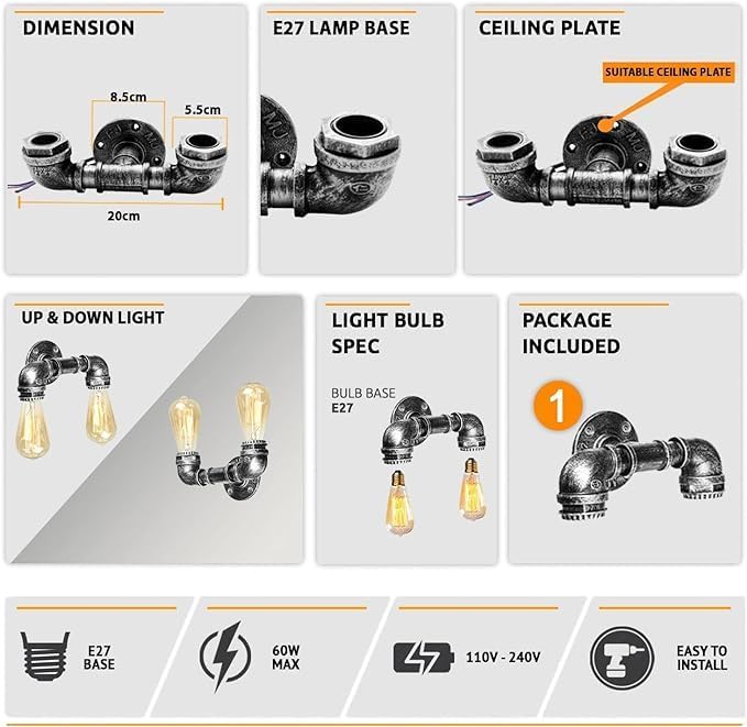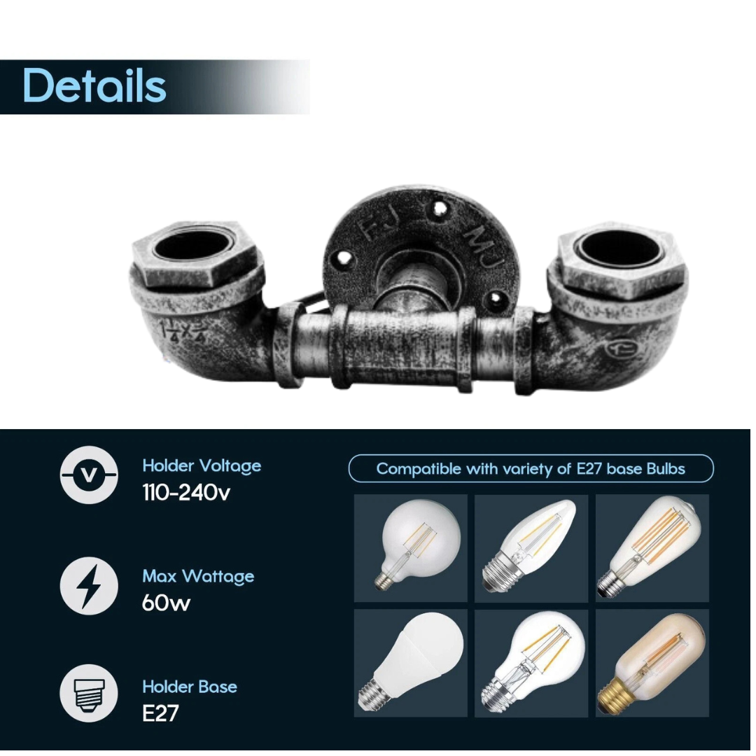 - 1 x Vintage double head water pipe wall light mount.( bulb isnt included)