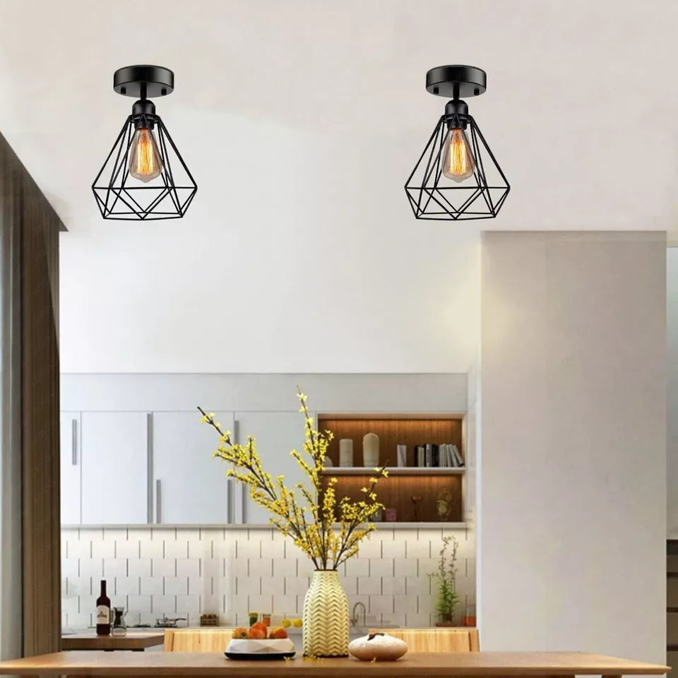 - This simple retro style flush mount ceiling metal cage light will brighten up your living space.