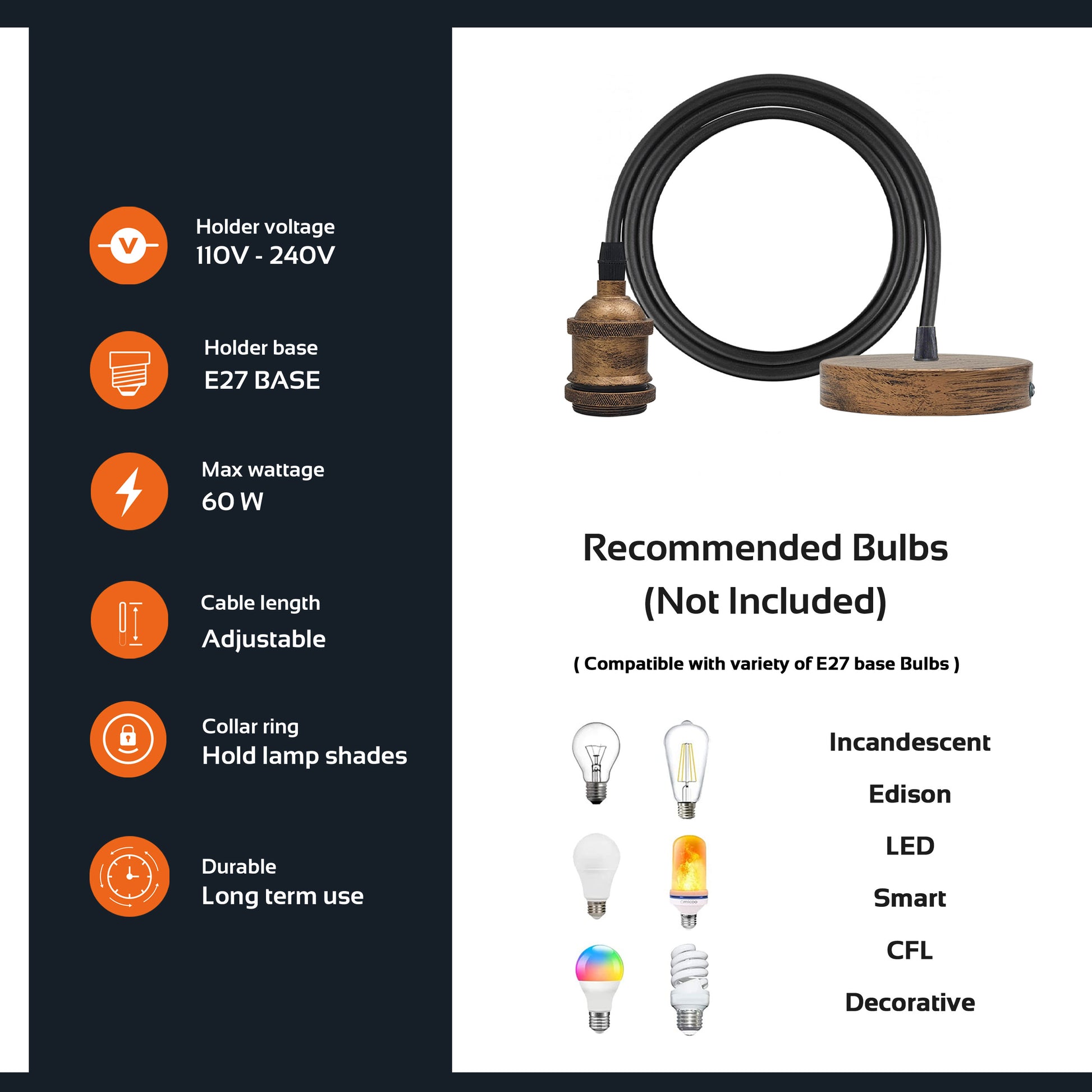 - The light fitting should be compatible with the E27 base, which is a common and standard size for light bulbs, allowing users to easily find and replace bulbs.