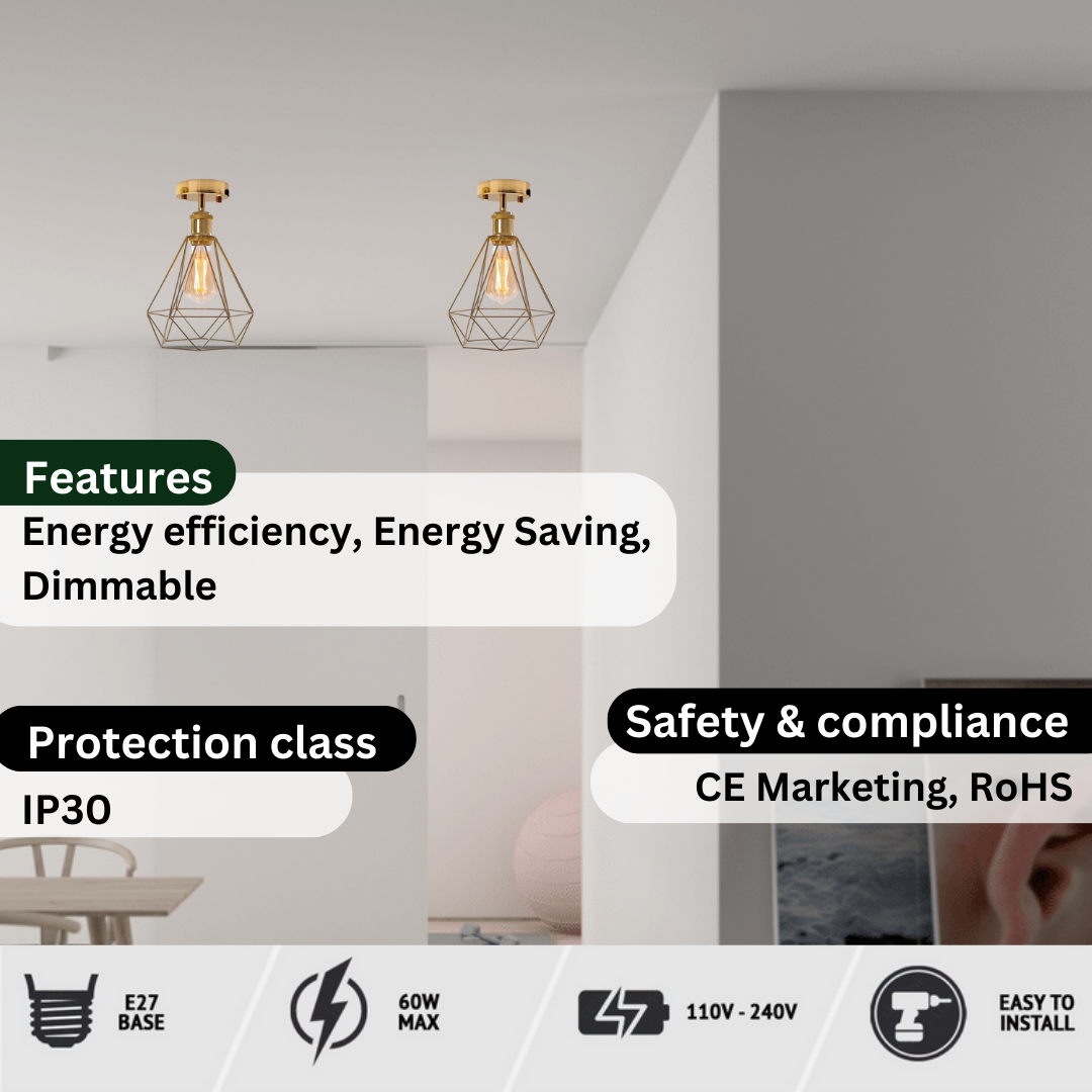 - This simple retro style flush mount ceiling metal cage light will brighten up your living space.