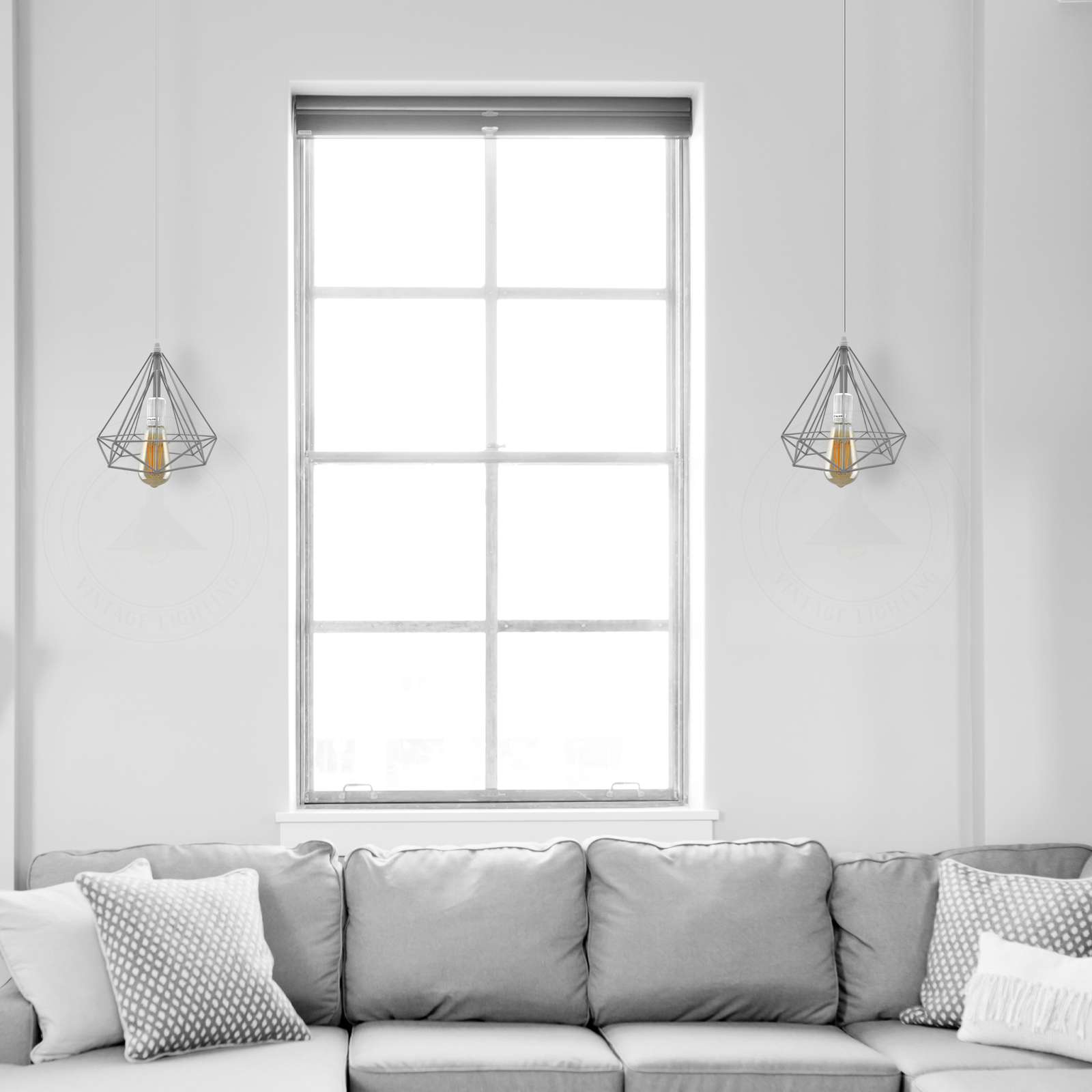 Vintage Industrial Diamond Cage Ceiling Pendant Light ~ 5664