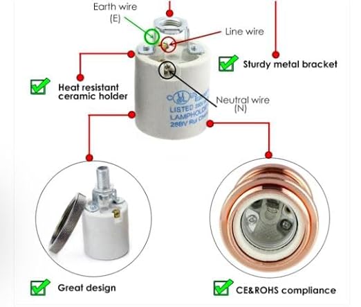 • Suitable for 110V-240V, This light bulb socket is made of metal, Furthermore, every bulb socket is CE certified.