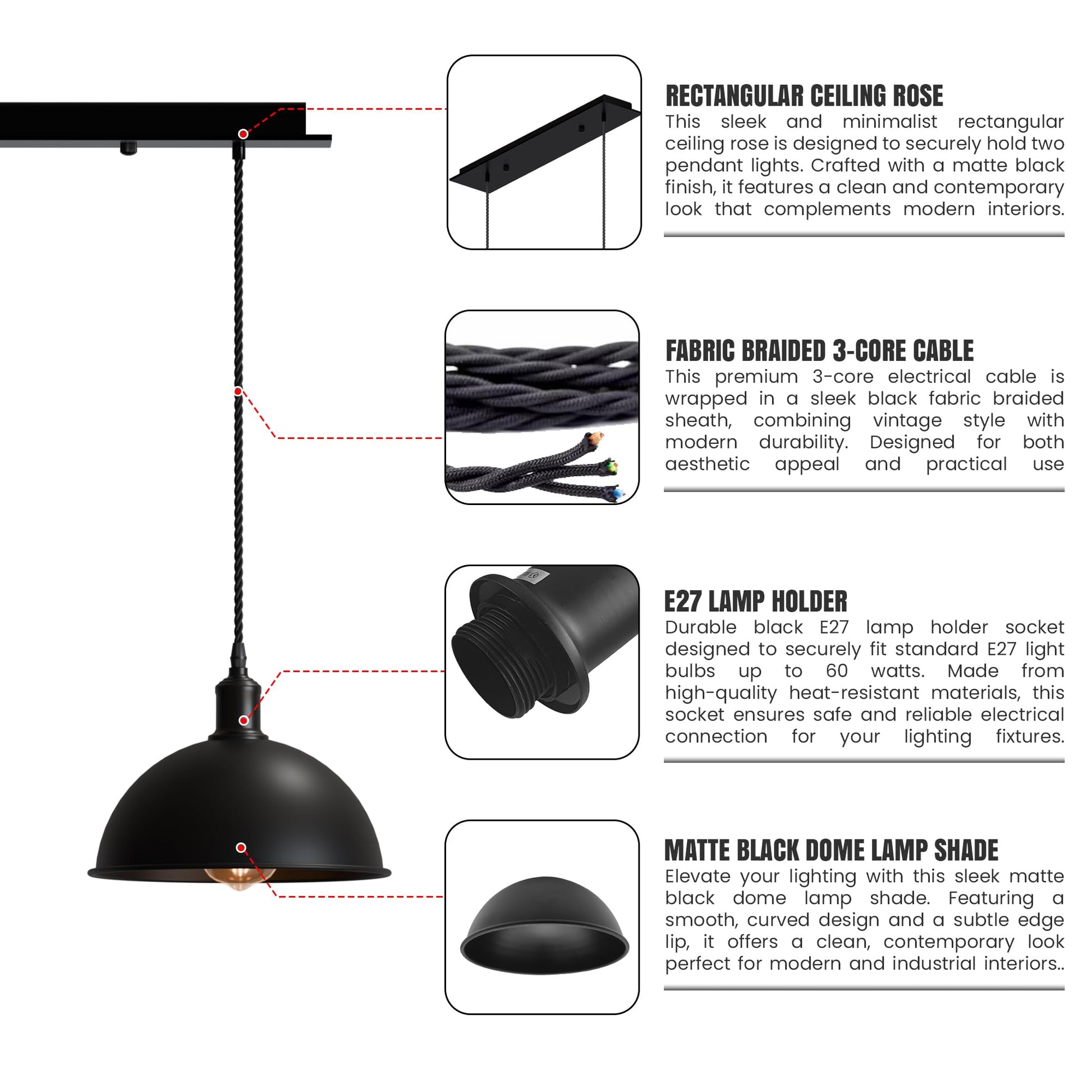 • Featuring sleek black dome shades and a durable metal construction, this ceiling light combines modern aesthetics with rustic appeal.