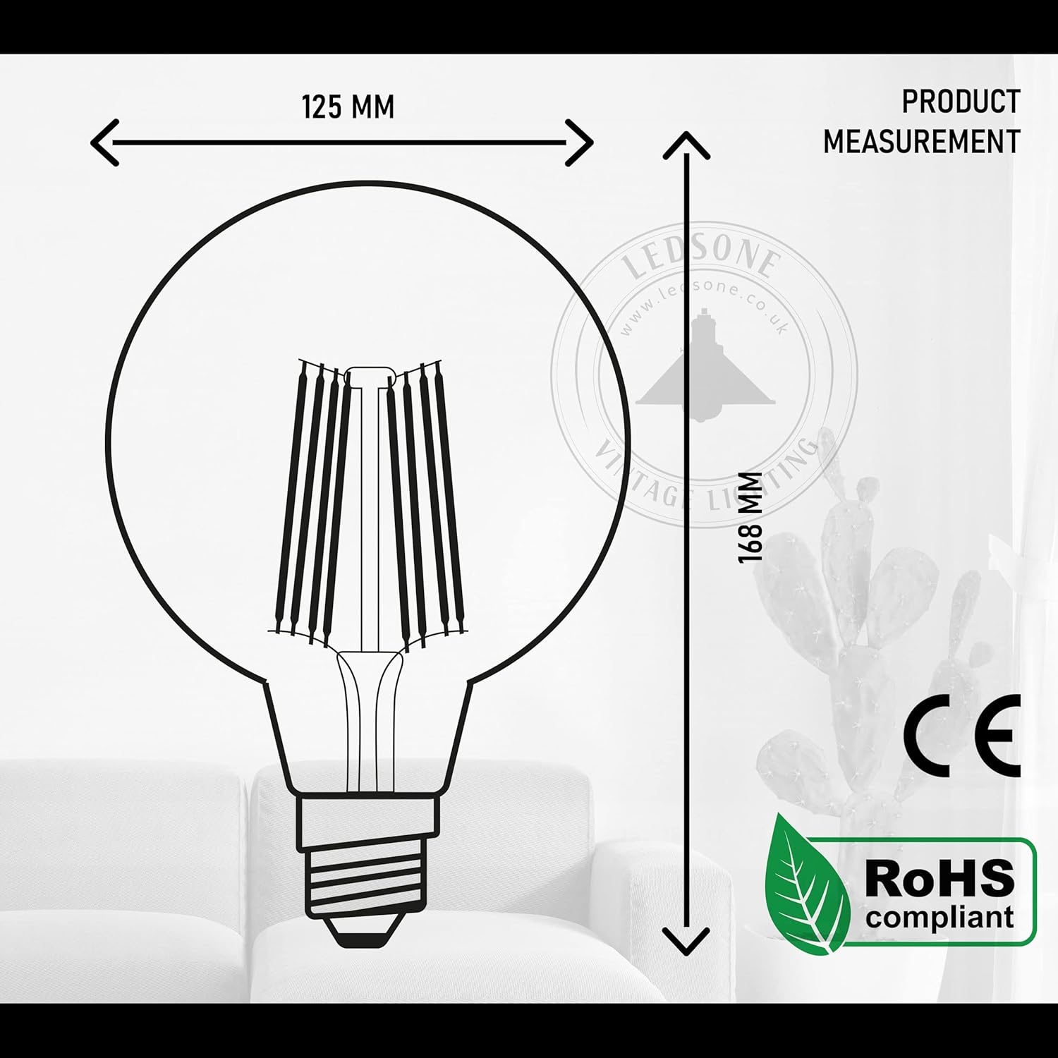 Item Type: Globe E27 Screw Vintage LED Filament Bulb