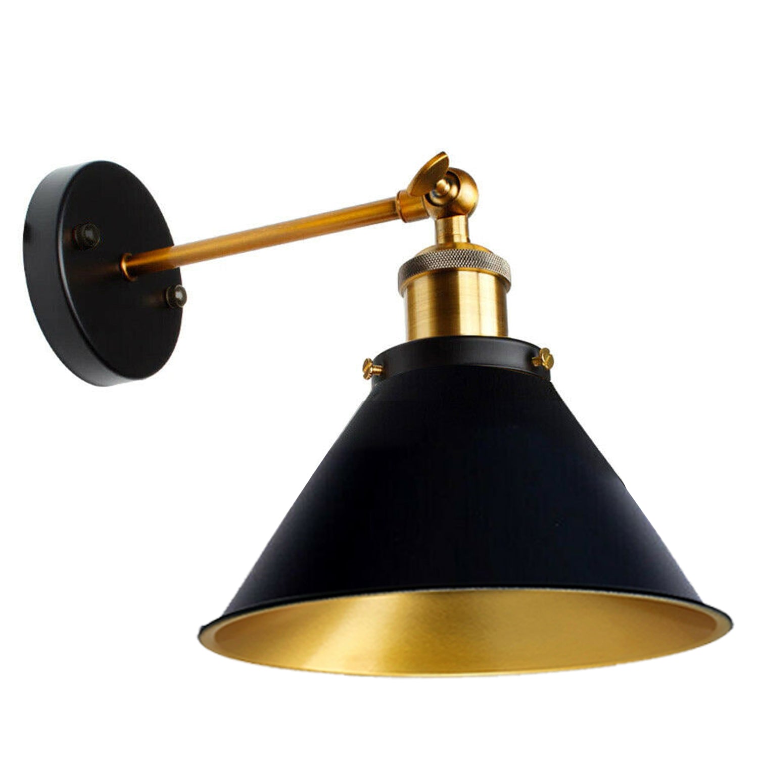- 1 x Wall Light Set (Includes black wall lamp shade, E27 holder with light arm, ceiling rose with accessories)