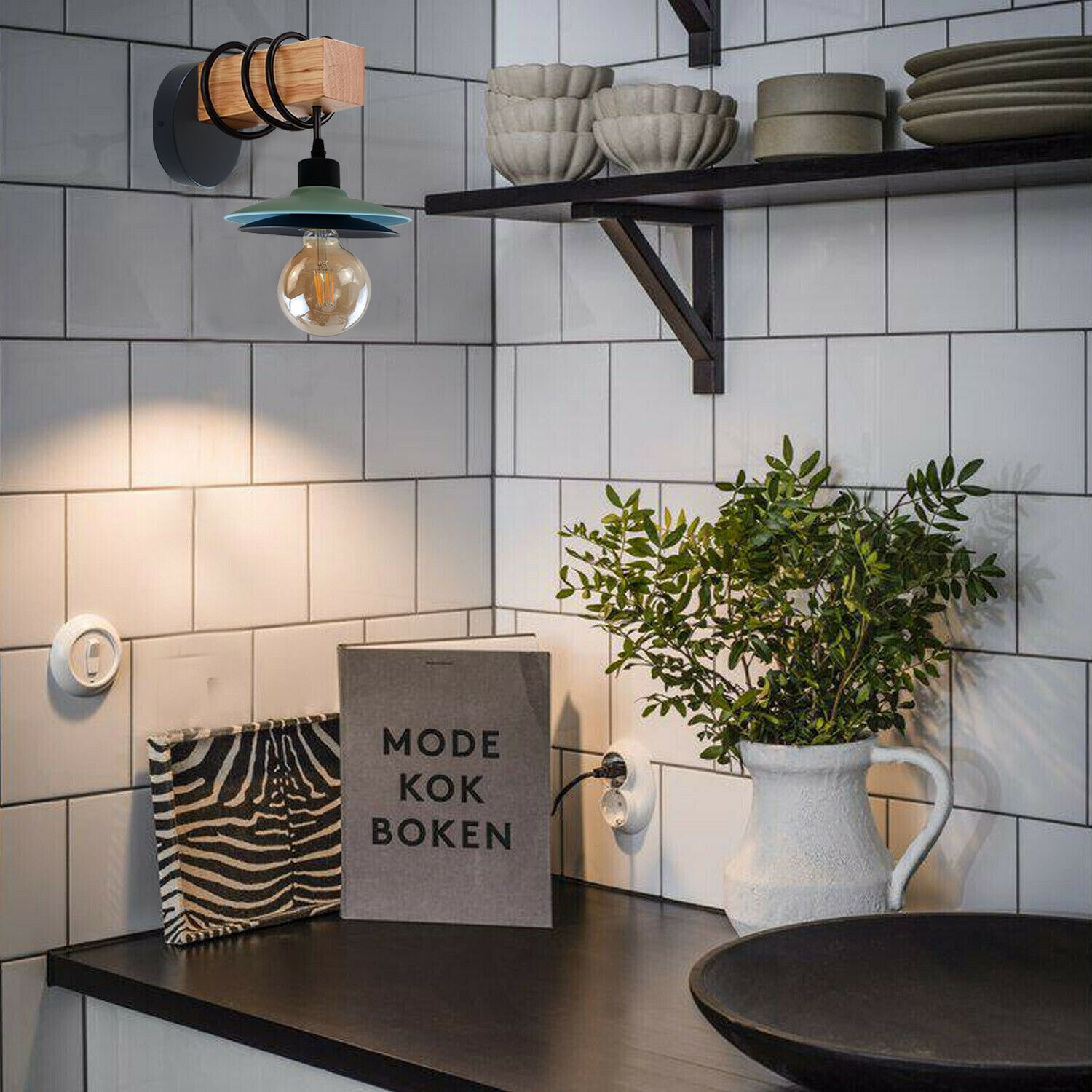 Vintage Industrial Wall Sconce | Wood & Metal Double Shade~1216