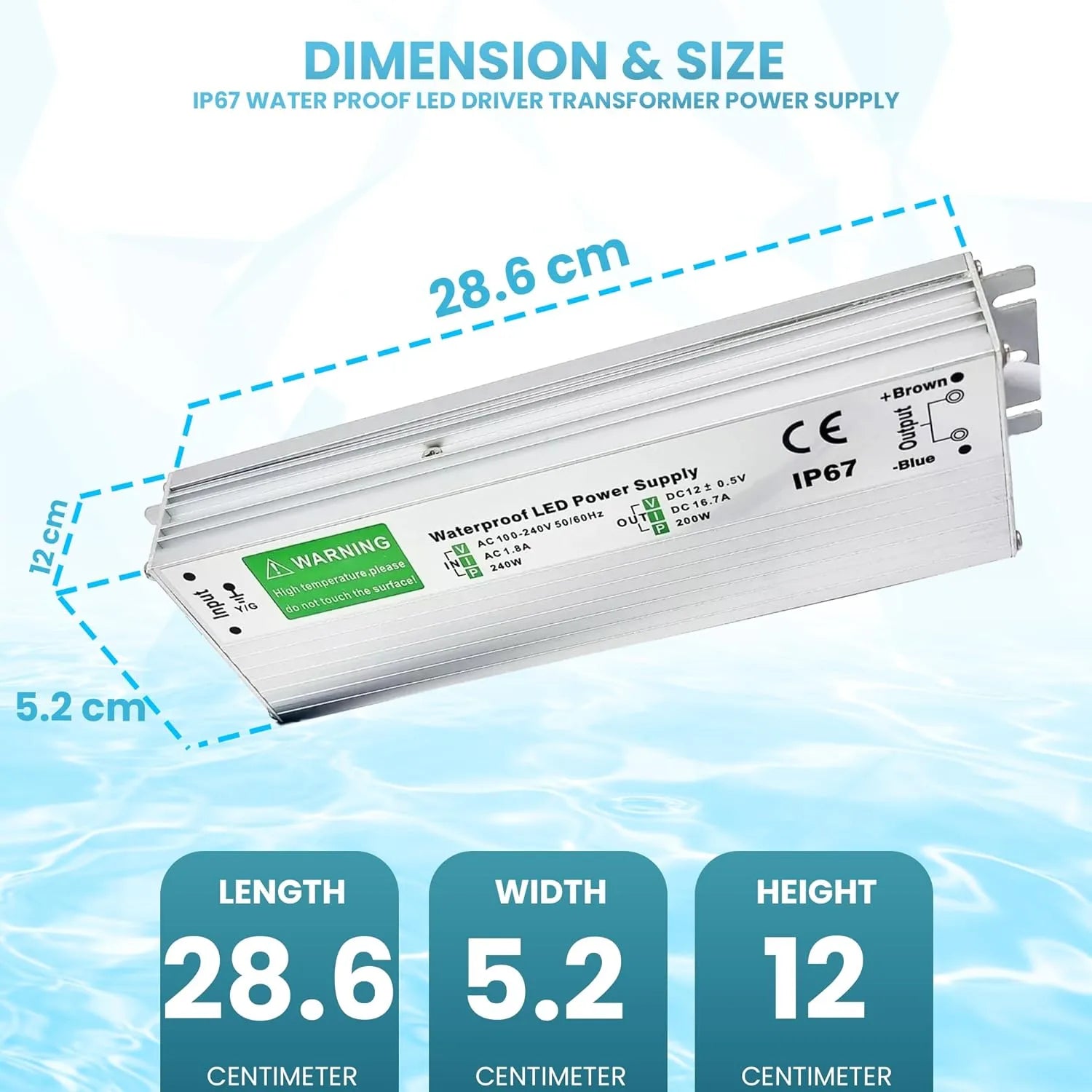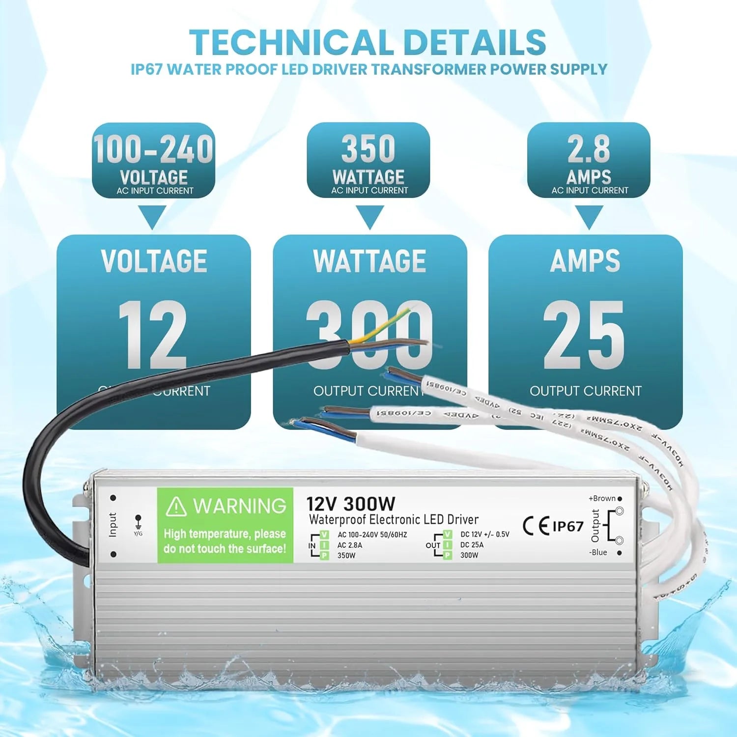 • 1 × 12V 300W 25A IP67 Waterproof LED Driver Power Supply Transformer