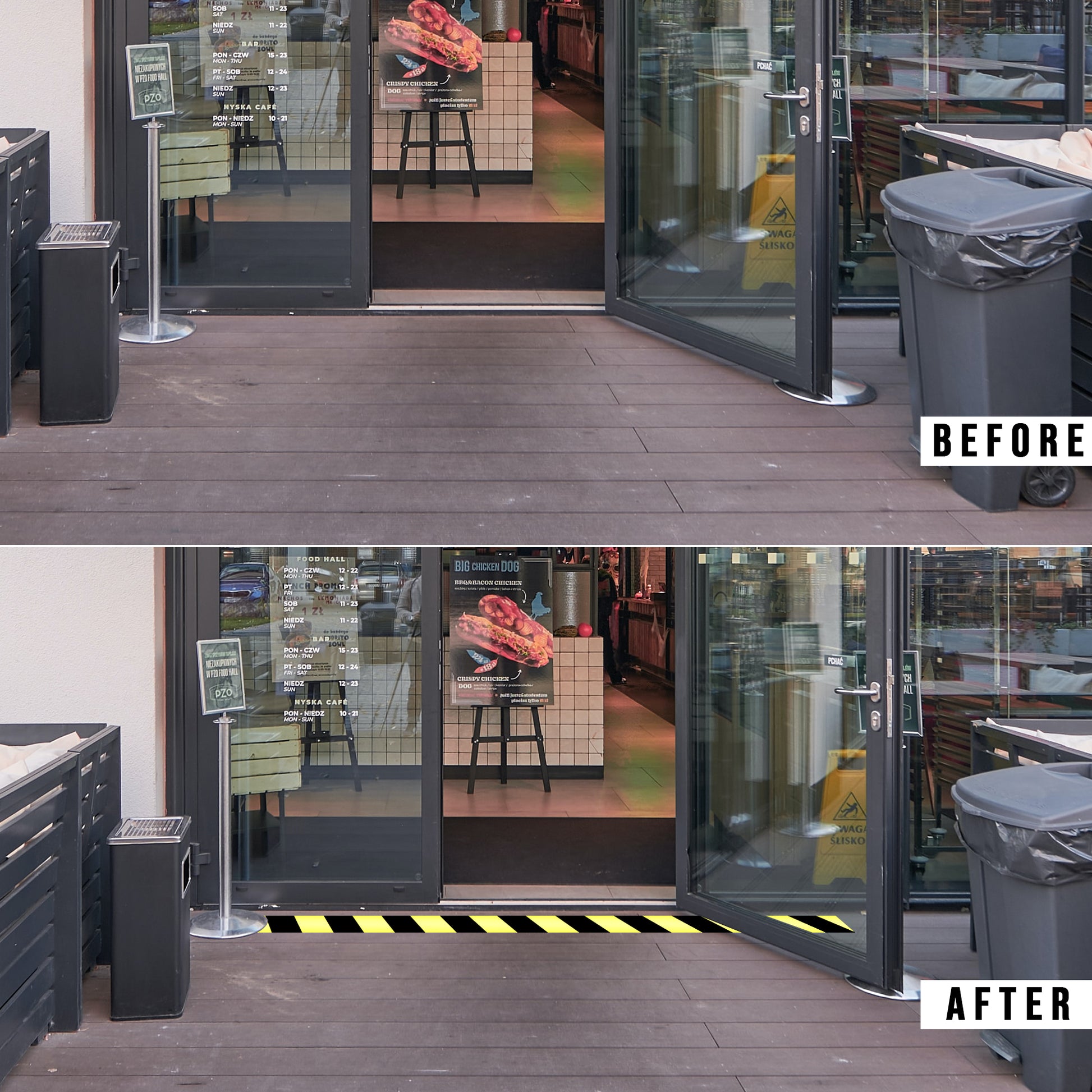 - Hazard tape is a strong, long-lasting adhesive that attaches immediately to most surfaces. It can be walked on right away after application.