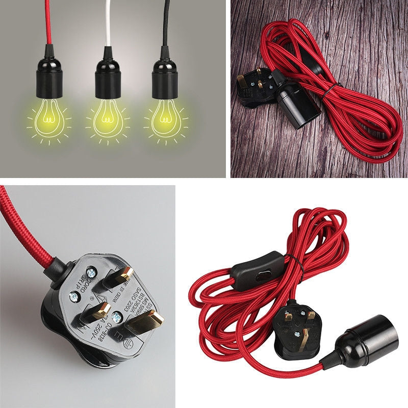 Fabric Flex Cable Plug In Pendant Lamp Light Set ES E27 With Vintage Bulb